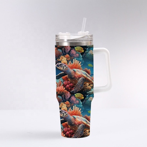 2024 sıcak satış 40oz/1200ml deniz kaplumbağası yosun pembe siyah mavi günlük kullanım paslanmaz çelik bardak kolu ile